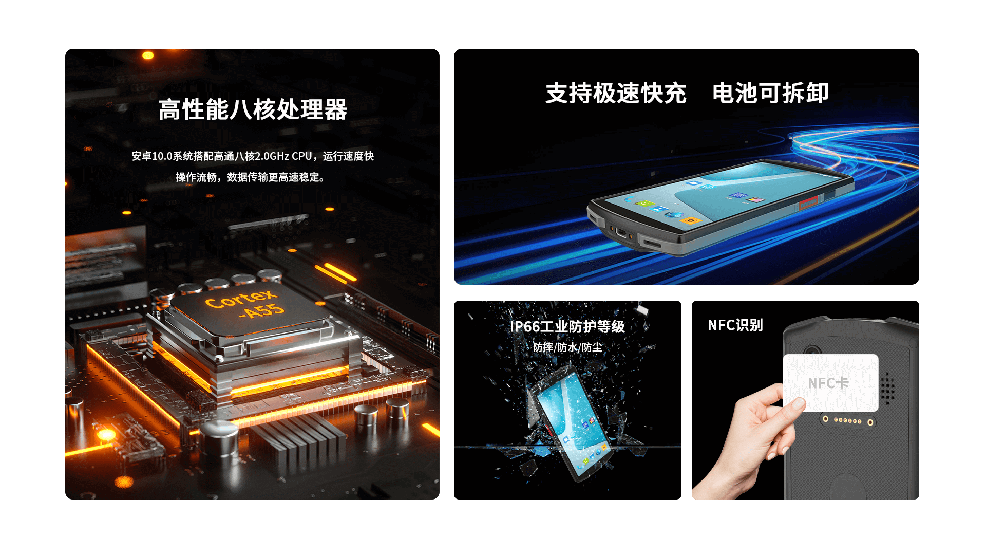 支持配备行业领先的霍尼韦尔/新大陆扫描引擎,毫秒级响应,快速读取一维/二维条码、磨损、皱折、扭曲、自行卷曲、脱裂或污损等条码照读不误。