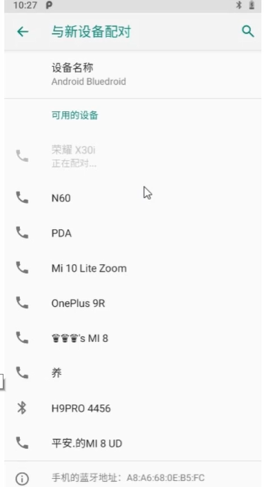 首先打开设备的设置,找到 蓝牙 的选项,同时打开手机的蓝牙调为可见模式,在设备上搜索可见设备,找到匹配的对应手机上的蓝牙名称,连接即可。使用蓝牙发送图片,可以在相册中找到对应的图片,照片的左下角第一个分享按钮,分享方式选蓝牙,在蓝牙中找到对应匹配的手机蓝牙名称,发送即可完成照片发送过程。