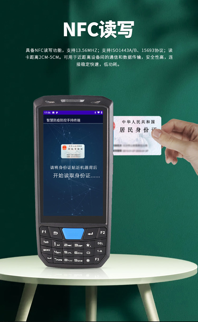 随着科技的发展,智能手持终端逐渐应用在各种行业之中,并为企业提供更加科学、高效的解决方案。智能手持终端的功能丰富,包括支持读写一维与二维码、拍照、NFC、指纹读写、身份证识别、测温等功能。其中智能手持终端的身份证读写有什么作用?