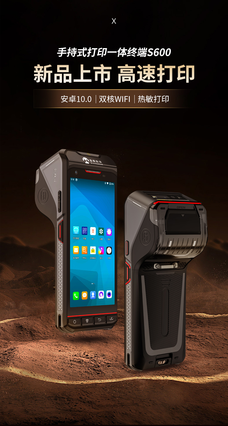 S90打印一体手持终端震撼上市,带来全新智能化体验,不管从外观上还是其内置参数上,适用于零售、餐饮、服装、停车收费等行业。